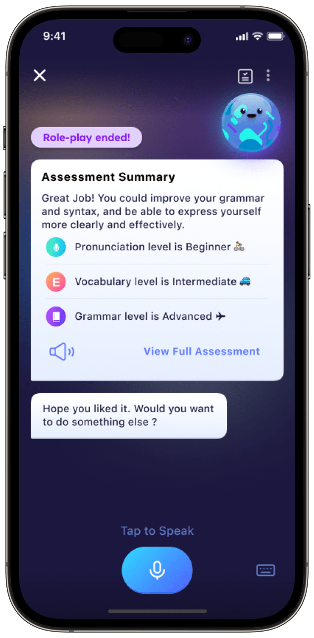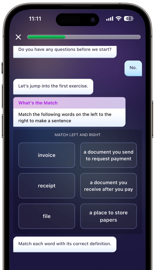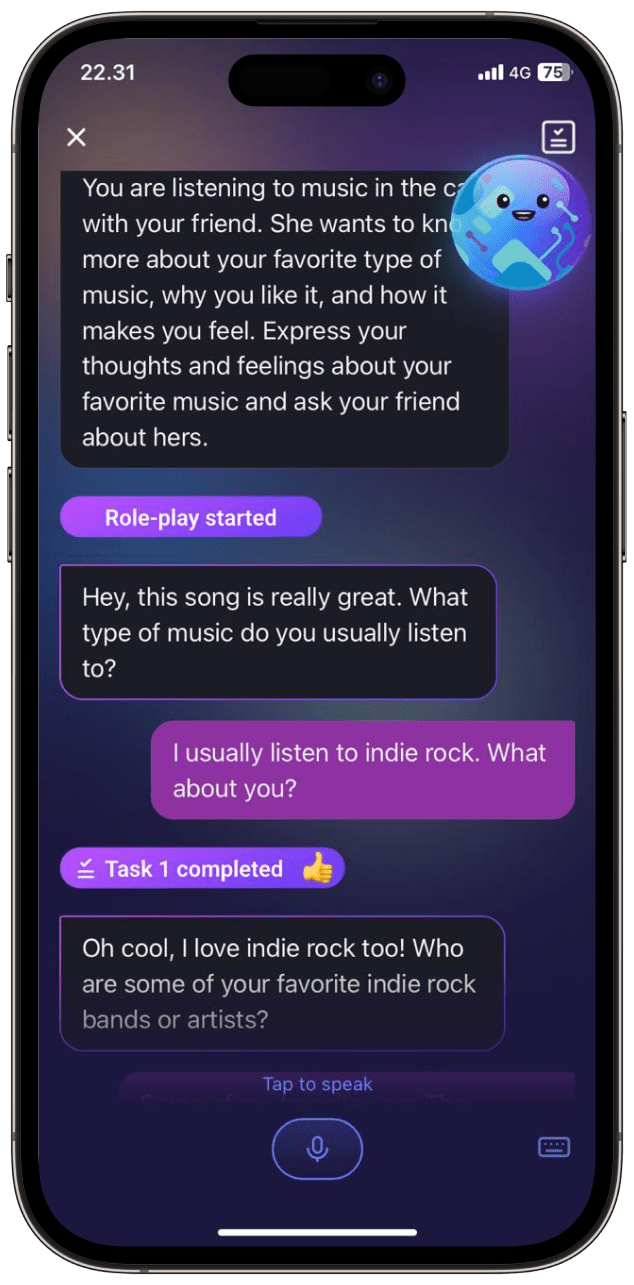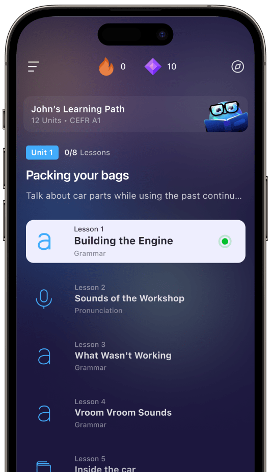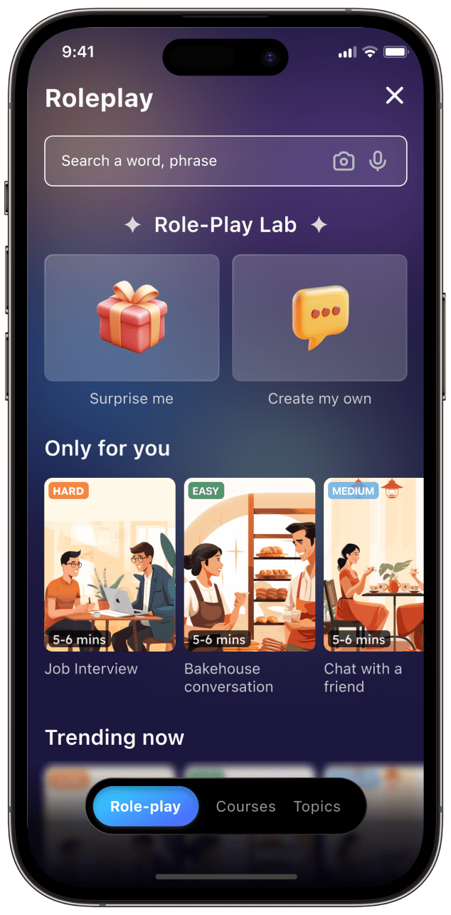 輕鬆練習口說和情境對話。A.I. 教練隨時隨地陪伴,推薦課程、