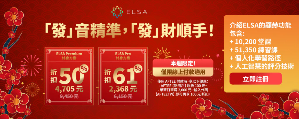 現在就是行動的時刻!ELSA Pro 限時優惠中,立即解鎖專業級發音矯正體驗!