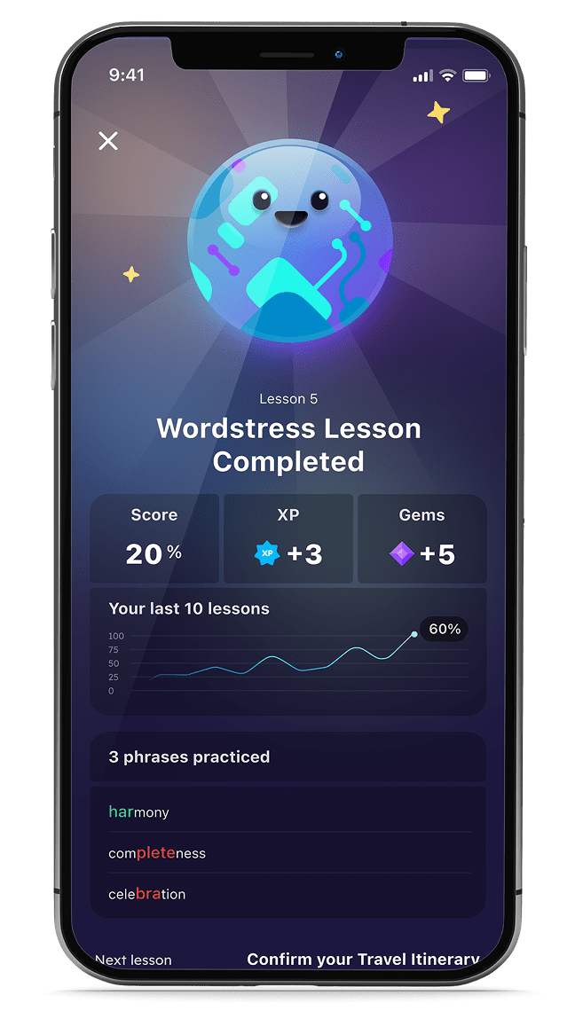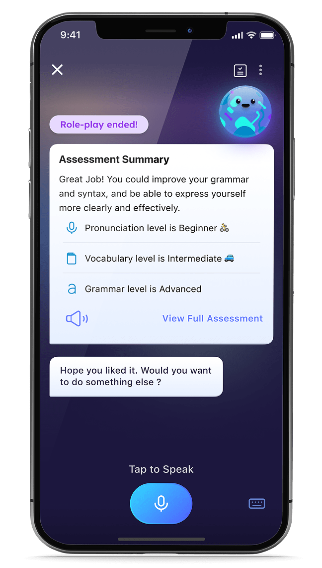 與您的智能口語教練一起練習現實生活場景,如面試或簡報。